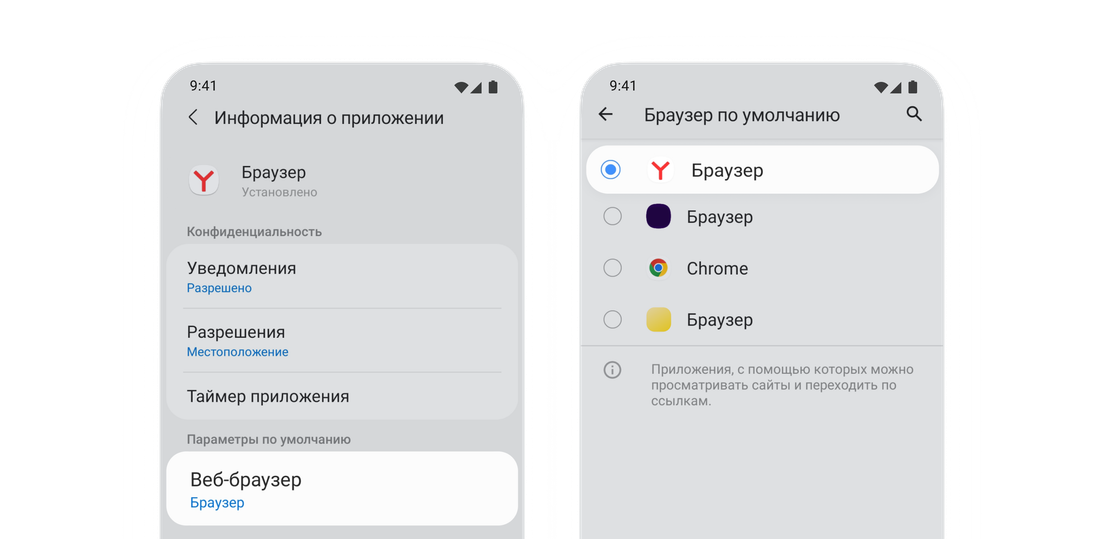 Нажмите «Веб‑браузер» и выберите Яндекс Браузер по умолчанию. Готово!