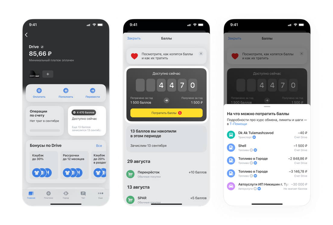 Узнать, сколько бонусов у вас есть сейчас и на какую сумму еще нужно сделать покупки, чтобы получить все бонусы в повышенных категориях, вы можете в приложении Т‑Банка или личном кабинете на tbank.ru. Баллы по карте Drive действуют три года — если за это время их не потратить, они сгорят.