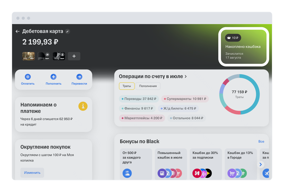 В Инвесткопилку, благотворительный фонд или на накопительный счет будем переводить кэшбэк за выбранные категории и от партнеров. Кэшбэк за покупки в Городе зачислим на карту Black. Как открыть накопительный счет
