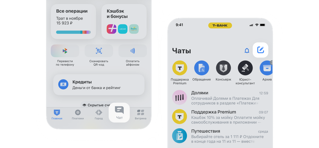 История чата привязана к вашей учетной записи в Т‑Банке и синхронизируется в приложении и личном кабинете. Вы можете продолжить диалог в любое время и с любого гаджета — переписка не потеряется, даже если вы купите новый телефон или смените номер.