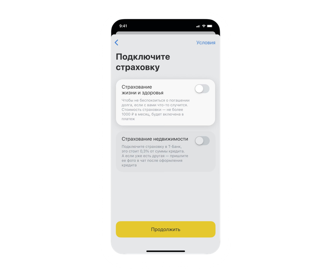 Чтобы сэкономить время, вы можете сделать эту страховку в Т-Страховании вместе с оформлением заявки на кредит. Тогда вам не придется никуда дополнительно ехать и тратить время на поиск и оформление такой страховки в другой компании. Наш представитель привезет вам сразу все документы по кредиту под залог недвижимости — в том числе и страховку. За нее не придется платить отдельно — стоимость страховки будет включена в сумму кредита.
