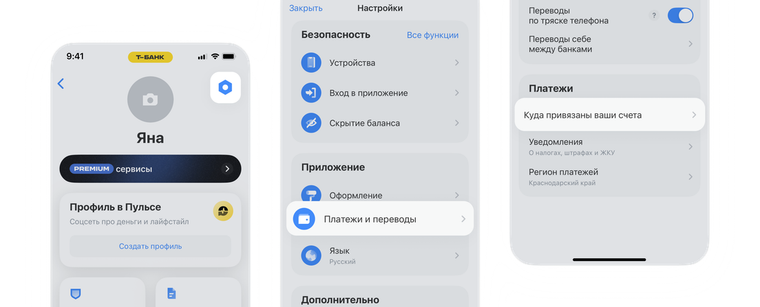 Привязать счет можно в приложении или на сайте онлайн-магазина, а также с помощью QR-кода при оплате товара. Управлять привязанным счетом можно в приложении Т-Банка. Где посмотреть привязанные счета