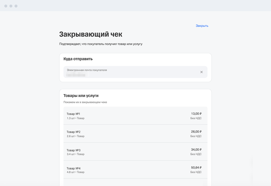 Готово. Чек отправится покупателю, к оператору фискальных данных и в налоговую.
