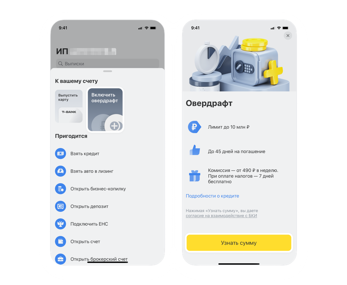 Если расчетный счет в Т-Банке есть, подключите овердрафт одним из способов: