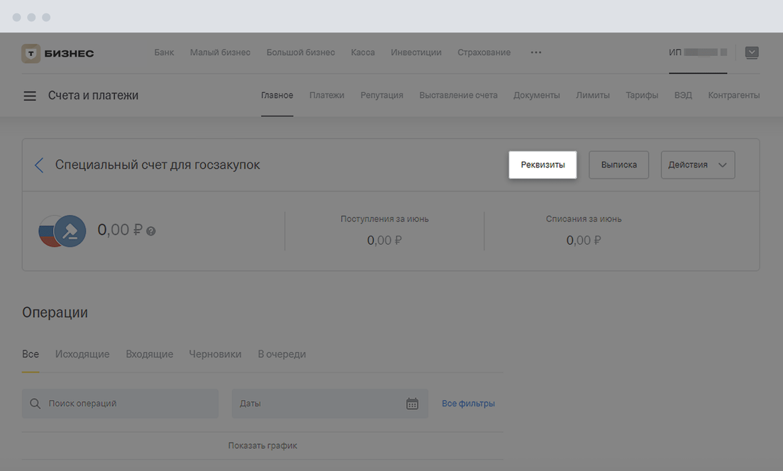 Посмотреть реквизиты можно в личном кабинете или в приложении Т‑Бизнеса.