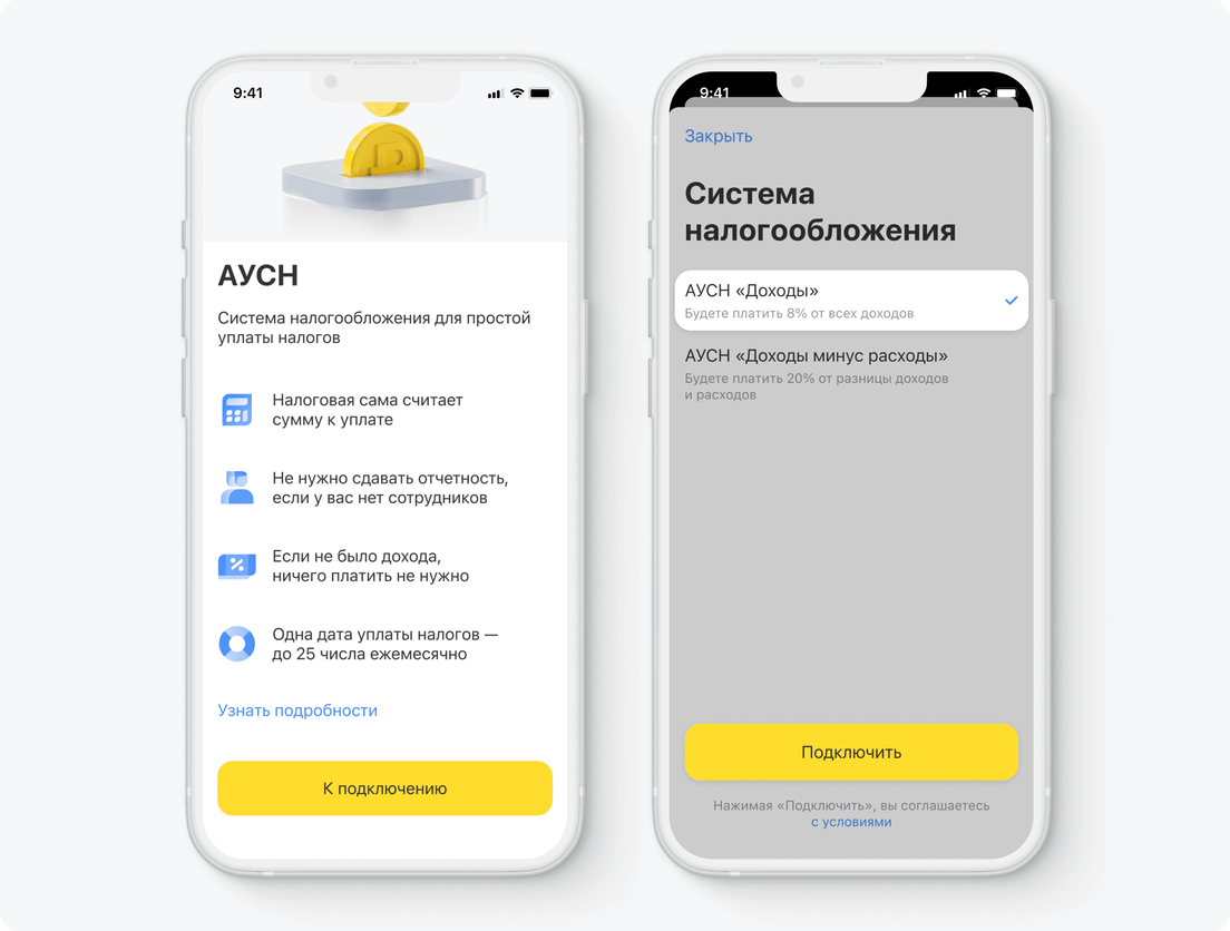 Если вы оформите ИП или ООО на АУСН и откроете расчетный счет в Т‑Бизнесе, сможете бесплатно пользоваться онлайн-бухгалтерией. Сервис поможет рассчитать и уплатить налоги. Подробнее об онлайн-бухгалтерии