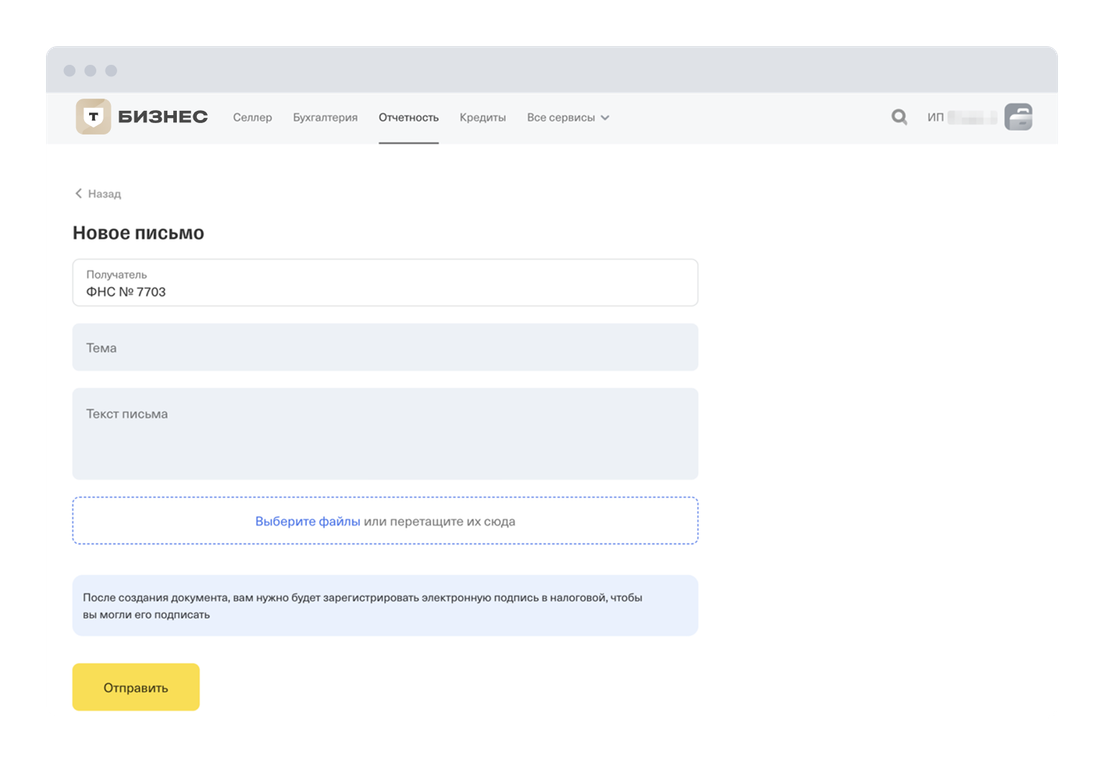 Если вы ИП на патенте или УСН, можете ответить на требования или отправить запрос в налоговую через личный кабинет Т‑Бизнеса.