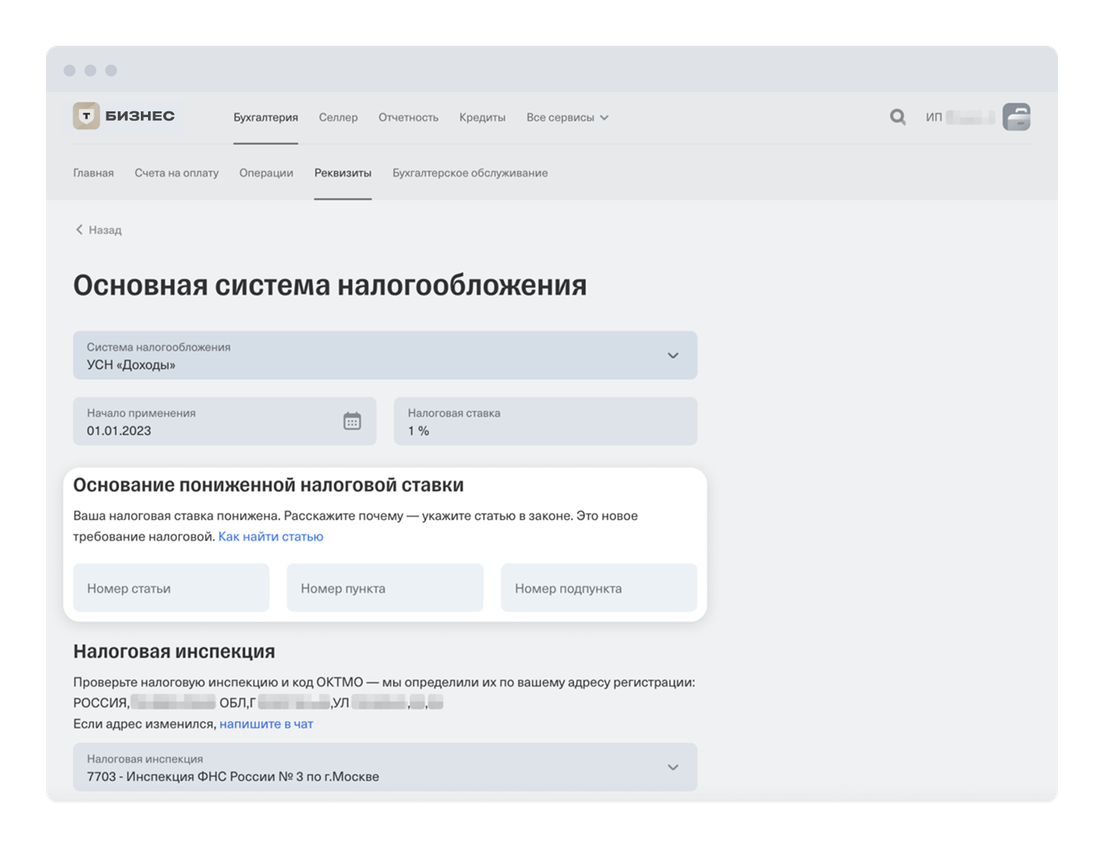 Если у вас остались вопросы о пониженной налоговой ставке, вы можете проконсультироваться с бухгалтером в Т‑Банке. Для записи на консультацию напишите в чат в мобильном приложении или в чат поддержки. Консультация бухгалтера платная.