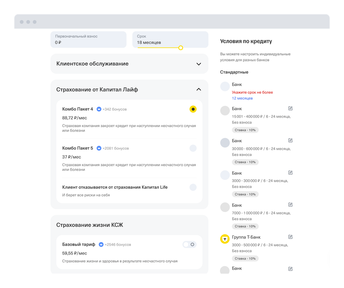 Услуга подключается во время оформления заявки. Озвучьте покупателю варианты страхования и попросите выбрать подходящий.