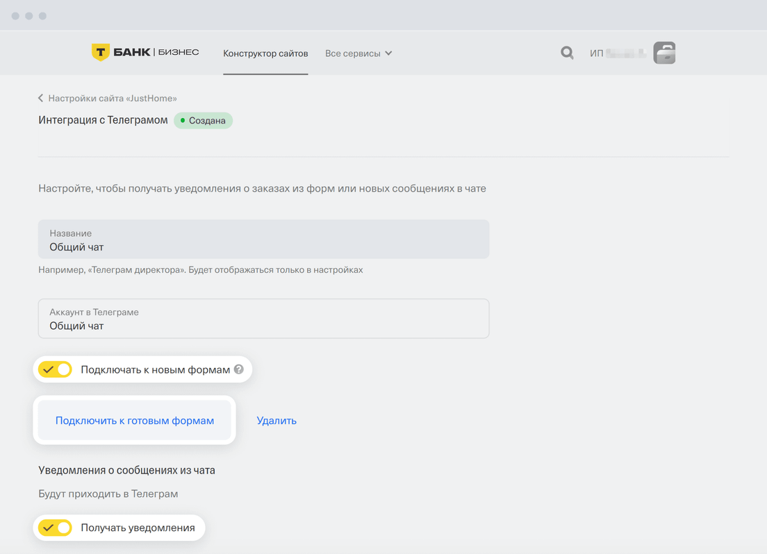 Готово! Теперь уведомления о заявках и заказах будут приходить в чат в Телеграме.