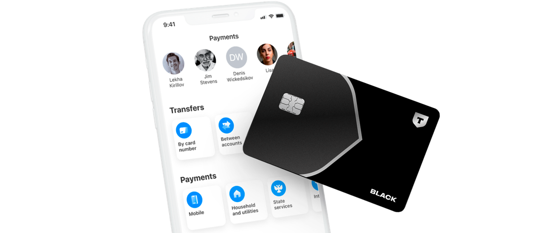 Transfers to other bank cards, payments for utilities, communication services, and fines starting at 0 ₽ with the Black debit card