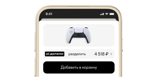 Покупатель добавляет товары в корзину и выбирает способ оплаты «Долями»