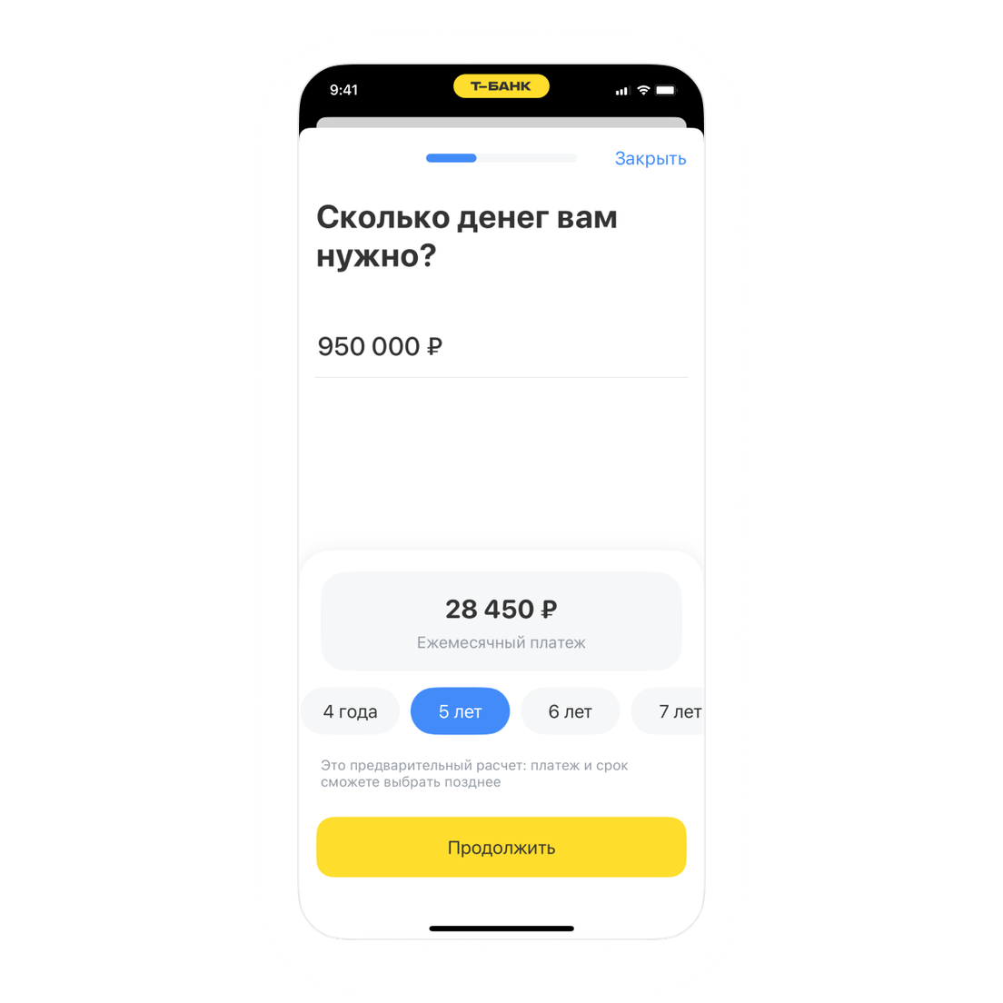 Подать заявку на кредит можно онлайн — в приложении банка или личном кабинете на сайте tbank.ru. Для этого достаточно указать стоимость машины, размер ежемесячного дохода и сумму первоначального взноса, если он есть. После того как отправите заявку, сотрудник банка свяжется с вами в течение двух дней, чтобы подробнее рассказать обо всех условиях.