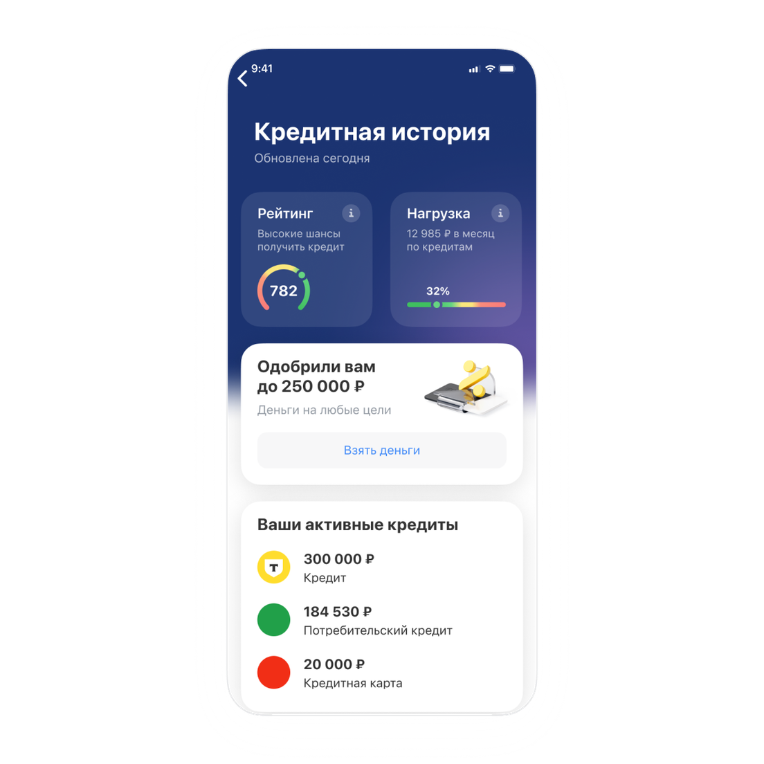 Проверять кредитную нагрузку. Если разрешите банку запрашивать данные кредитной истории, в Финздоровье отобразятся все ваши займы: кредиты наличными, кредитки, рассрочки, ипотека.