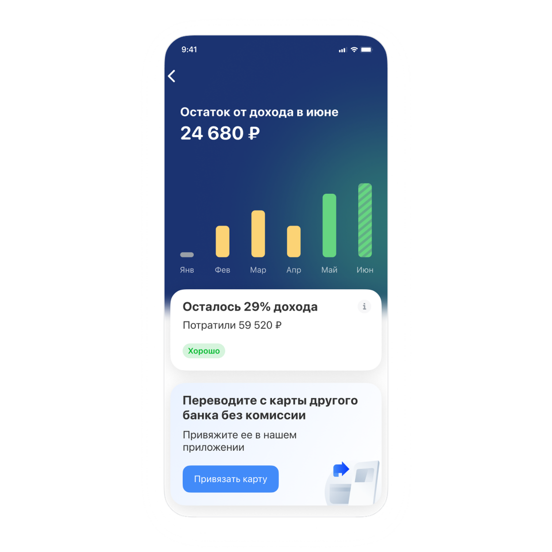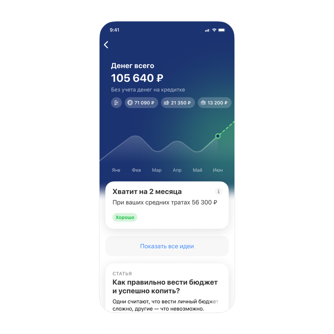Грубо говоря, это витрина с вашими деньгами: здесь можно посмотреть, сколько их всего, как увеличиваются ваши накопления и какая часть дохода остается к концу месяца.