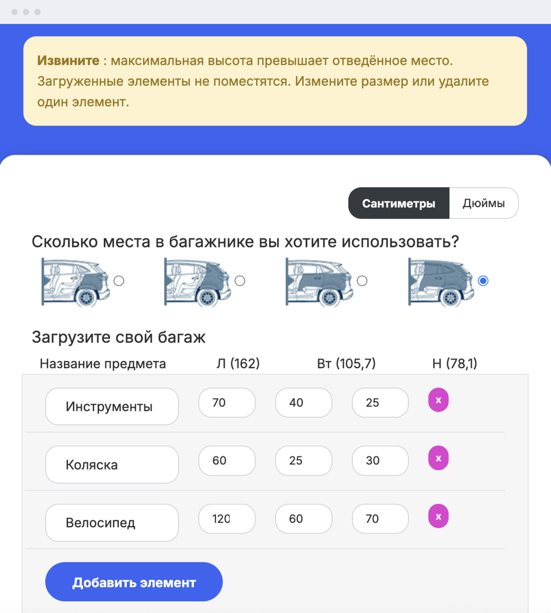Оценить объем багажника на глаз сложно. Единственный вариант понять, хватит ли вам пространства, — прикинуть, сколько вещей туда влезет. Для этого в интернете есть сервисы, где наглядно показано, сколько вещей поместится в багажник конкретной машины. Один из таких — калькулятор How many bags fit.