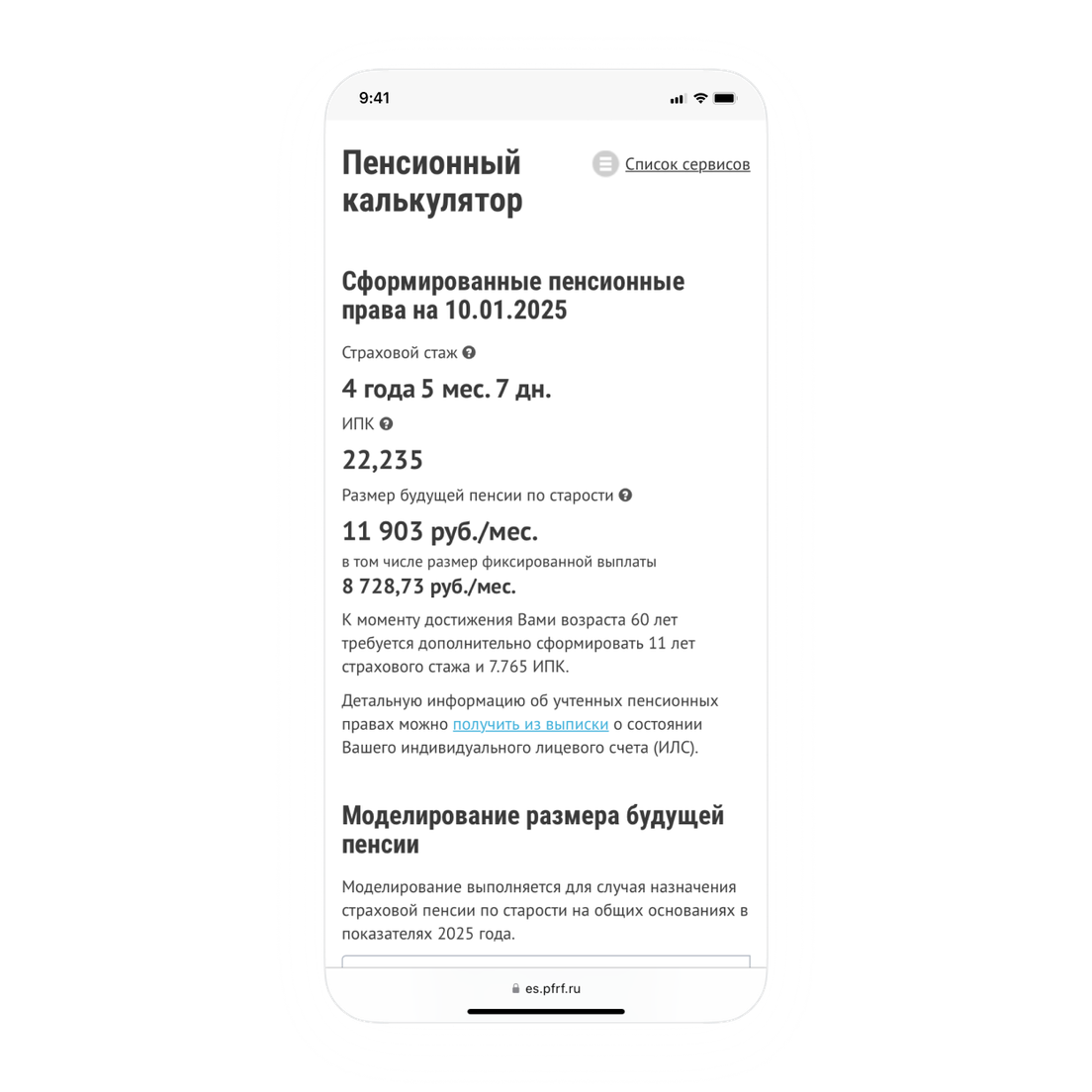 У коэффициента есть стоимость: в 2025 году один коэффициент стоит 145,69 ₽. Это значит, что при расчете пенсии количество коэффициентов умножают на их стоимость и так получают сумму, которую прибавляют к фиксированной части.