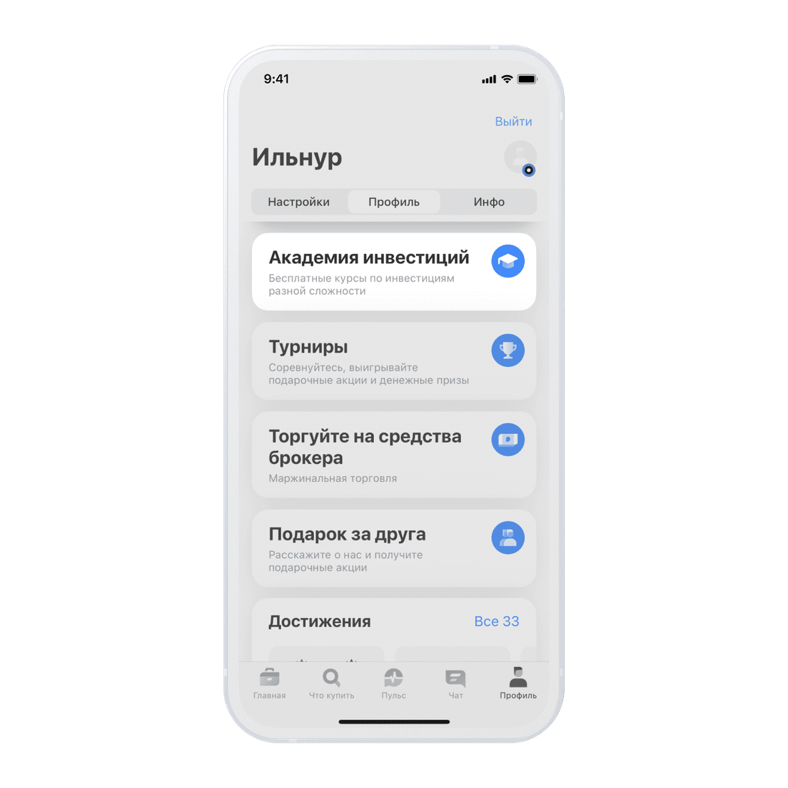 Где найти курсы: в приложении Т‑Инвестиции перейдите во вкладку «Еще» → «Инфо» → «Академия инвестиций».