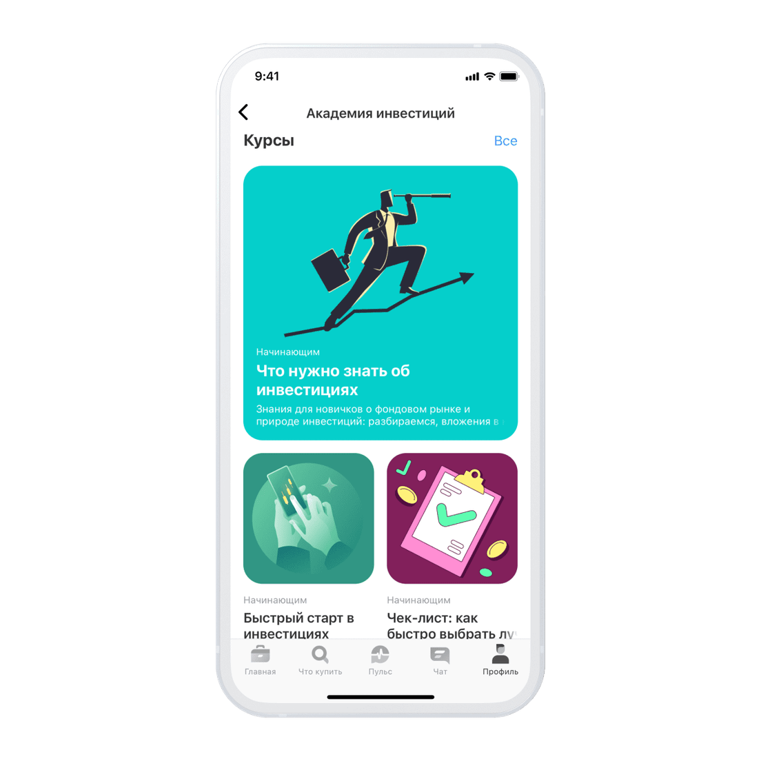 Что уже доступно: шесть курсов, разных по уровню сложности, для начинающих и продвинутых инвесторов.