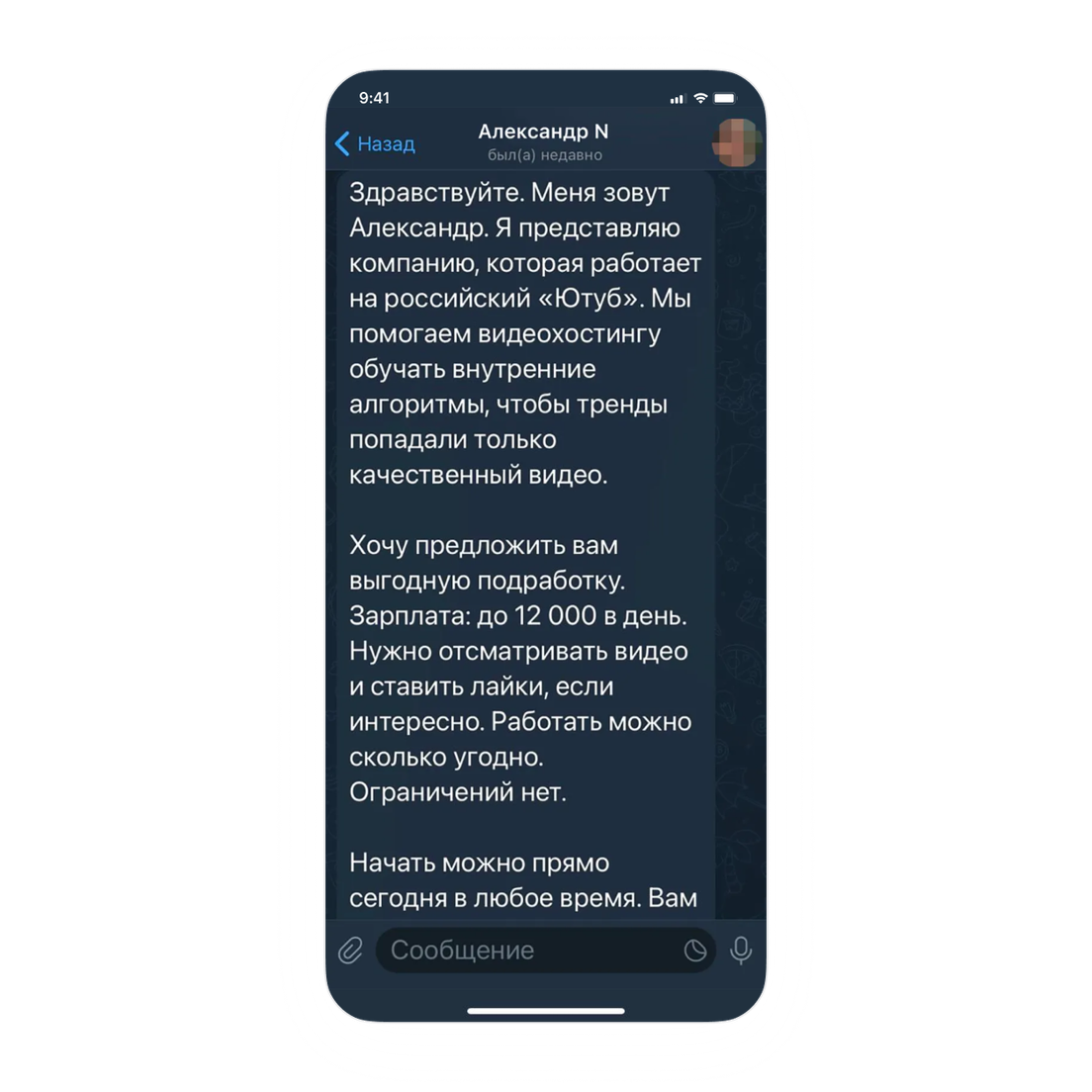 Предлагают подработку. Обязанности, как правило, минимальные: ставить лайки под видео или писать отзывы на товары. Зато условия выгодные: большой доход и возможность работать сколько и когда захочешь. Для правдоподобности злоумышленники могут даже перевести ребенку небольшой аванс, например 1 000 ₽. Позже они просят у него деньги, чтобы открыть доступ к более прибыльными заданиям или оформить специальную зарплатную карту.