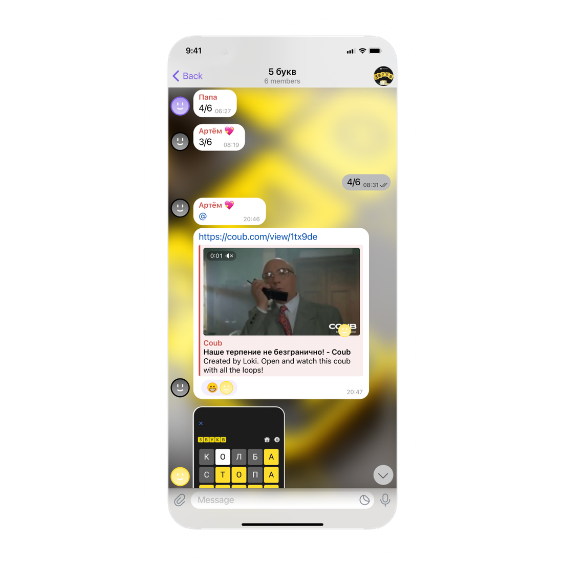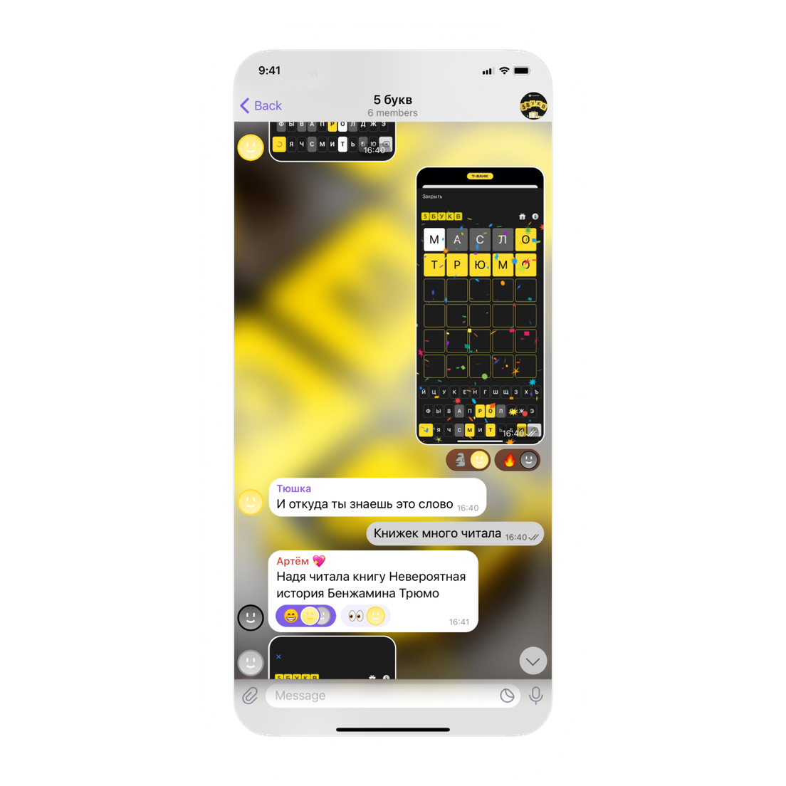 Со временем играть в «5 букв» стало семейной традицией. У нас есть чат, куда мы каждый день отправляем свои результаты. Интересно посмотреть, как справились другие, особенно прикольно, если слова совпадают.
