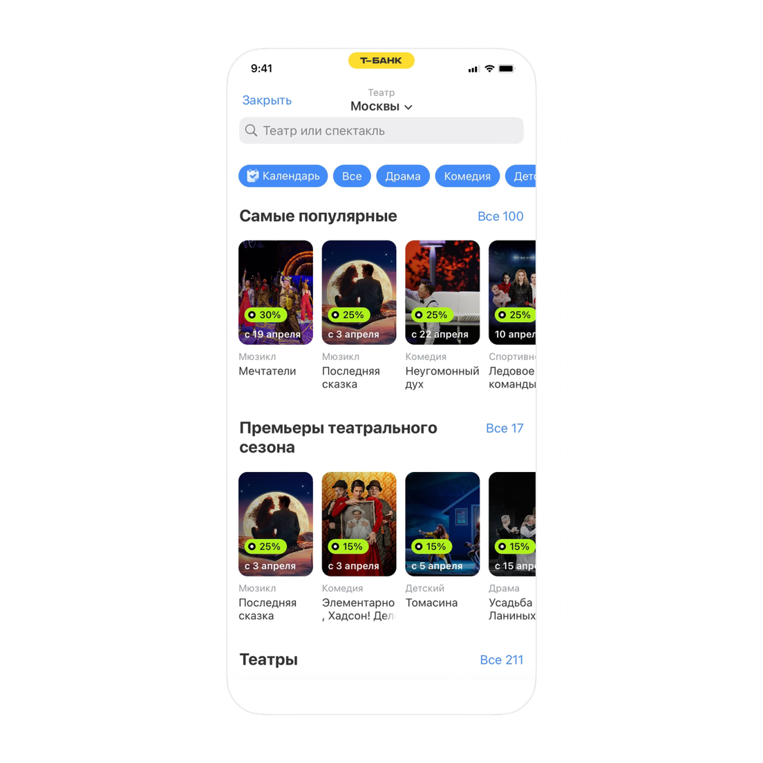 Афиша — билеты в кино, театр, на концерты и выставки. Кэшбэк без подписки Pro — до 3%, с подпиской — 15%, с сервисом Premium — 20%. По акциям можно купить билет с кэшбэком до 30%.