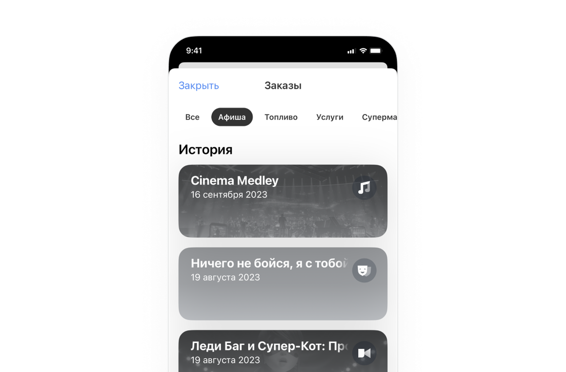 С Городом покупка билетов в кино не отнимет у вас больше минуты. Откройте приложение Т‑Банка → раздел «Город» → «Афиша» → «Кино», найдите интересующий вас фильм и нажмите «Купить билет». Останется выбрать ближайший кинотеатр и удобный сеанс, а потом оплатить билеты онлайн. Вводить данные карты не придется — спишем сумму с вашего счета в Т‑Банке.