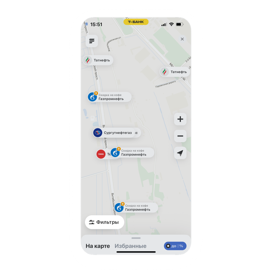 Заправку ищите на карте в приложении. Там увидите фильтры — по бренду АЗС и виду топлива.
