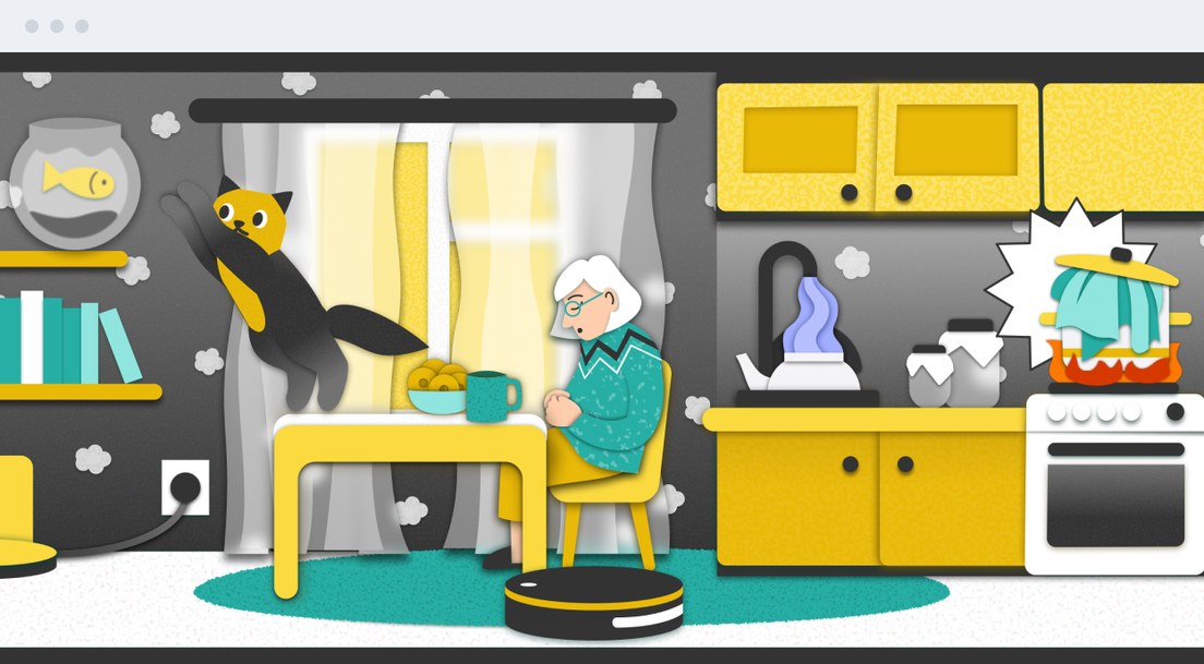 Ваша задача — обнаружить происшествия и помочь домовому все исправить. Например, найти, где загорелась розетка, прорвало трубу, разбилось окно или пошла трещина по потолку.