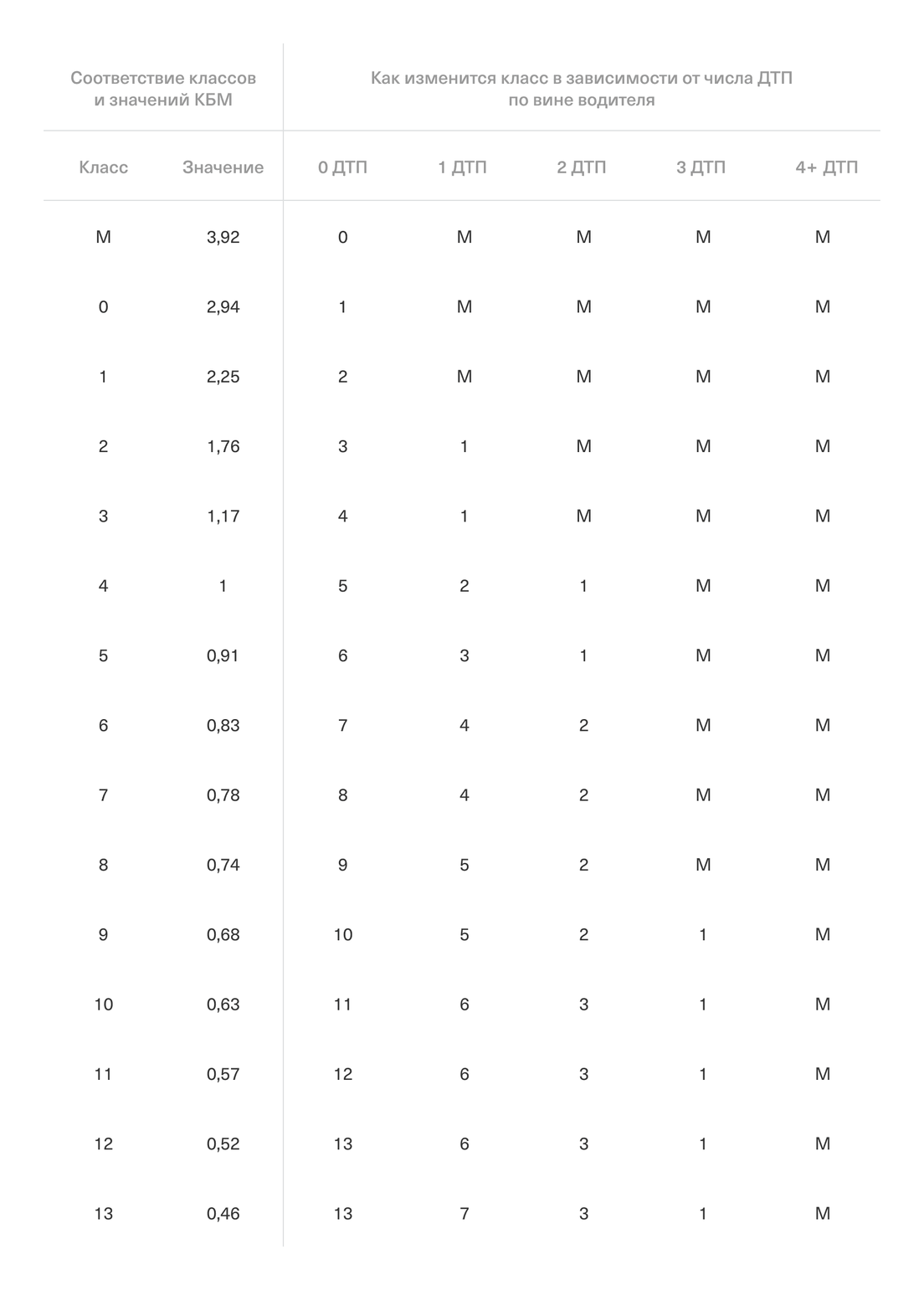 Перерасчет КБМ происходит раз в год — 1 апреля. Коэффициент присваивают водителю, а не его автомобилю: если пересядете на другую машину или мотоцикл, значение не изменится.