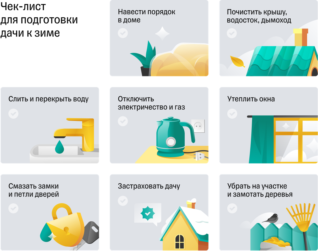 Ковры, шторы и другой текстиль лучше увезти в город. Но если планируете приезжать на дачу зимой и вещи могут понадобиться, сложите их в пакеты и плотно закройте. Тогда они останутся чистыми к вашему приезду и в них не заведутся насекомые.