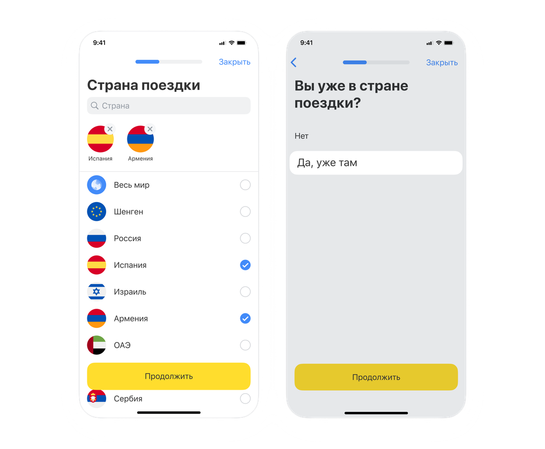 Если уже находитесь за рубежом, при оформлении полиса в приложении Т‑Банка нажмите «Да, уже там», чтобы страховка действовала и на текущую поездку