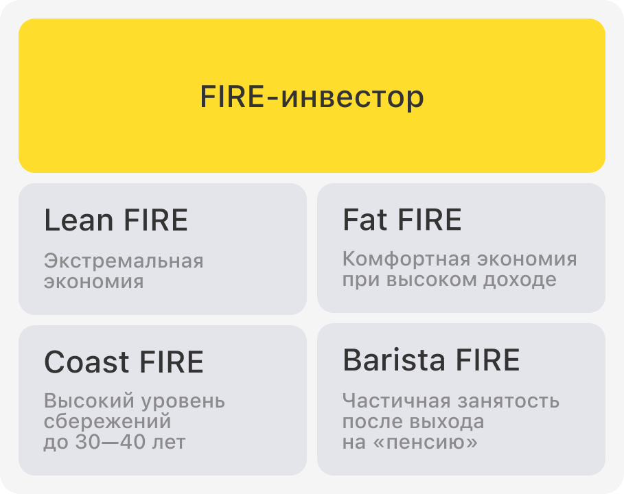 Подходы к достижению целей FIRE могут быть разными. Мы же выделили четыре наиболее распространенных типа, основанные на поведении и стиле жизни инвесторов. В одном из них мы предлагаем найти себя и выбрать подход, соответствующий вашим предпочтениям.