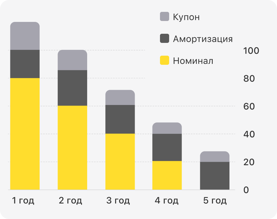 Бумаги с амортизацией позволяют заемщику (компании, у которой вы купили облигации) погасить номинал или его часть заранее в определенные даты.