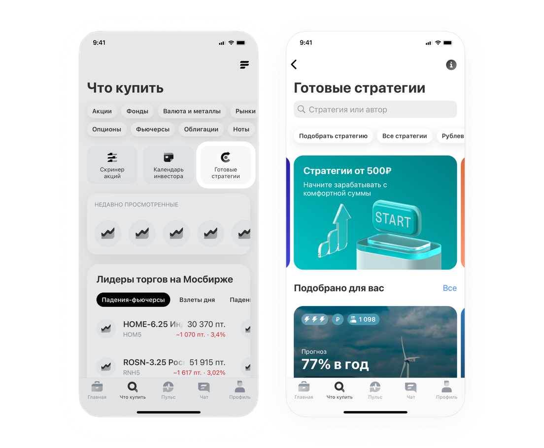 В приложении Т‑Инвестиций стратегии можно найти в разделе «Что купить» → «Готовые стратегии».