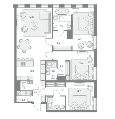 Комплекс Lunar состоит из трех зданий, объединенных одной концепцией, но разных по функционалу. В модулях A и C расположились квартиры премиум-класса, в модуле B — бизнес-центр.