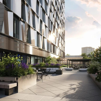 Перед жилым комплексом будет создана благоустроенная набережная, которая соединится с парком Северного речного вокзала. В результате появится прогулочное