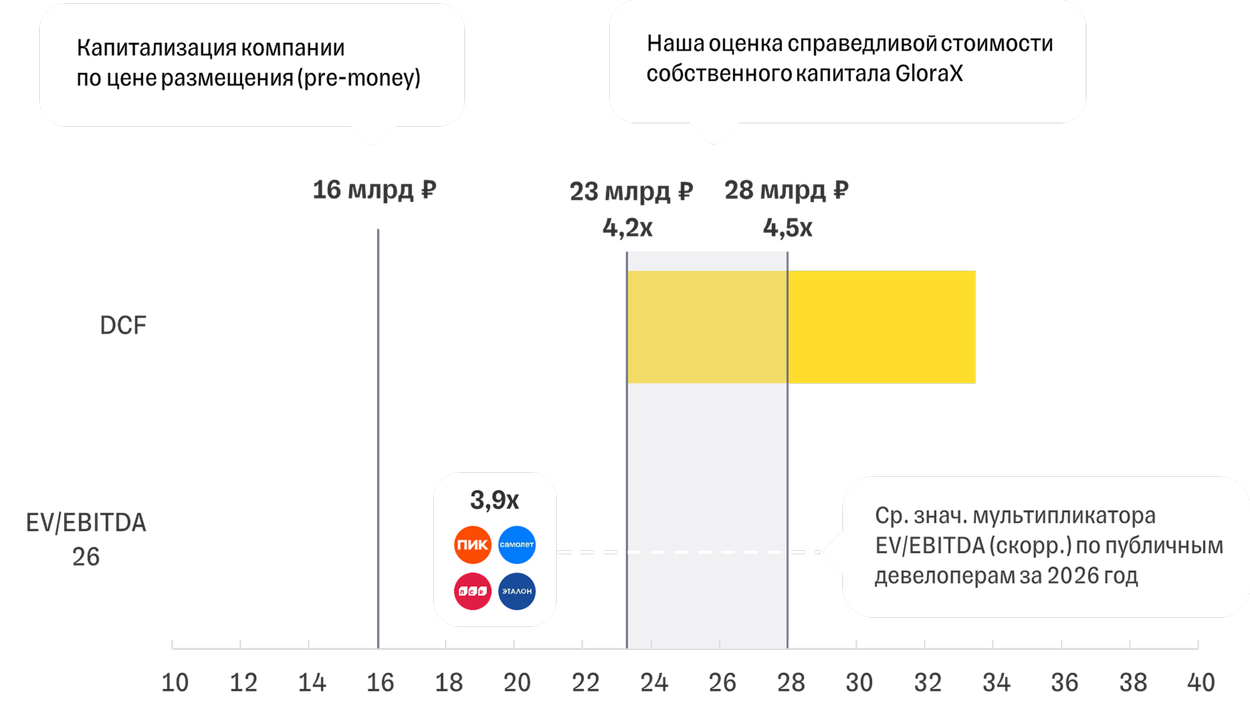 Так мы оцениваем справедливую стоимость собственного капитала GloraX, что соответствует нижней половине диапазона дисконтированных денежных потоков.