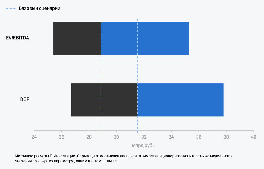 Опираясь на базовые сценарии двух способов оценки, наша оценка стоимости акционерного капитала Henderson находится в диапазоне 28,9—31,5 млрд рублей.