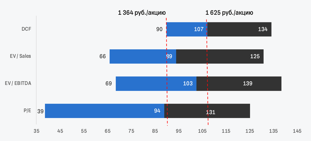 Итоговая целевая цена по методу дисконтированных денежных потоков составляет 1 625 рублей за акцию. Это подразумевает потенциальную доходность около 25% с текущих уровней до конца года.
