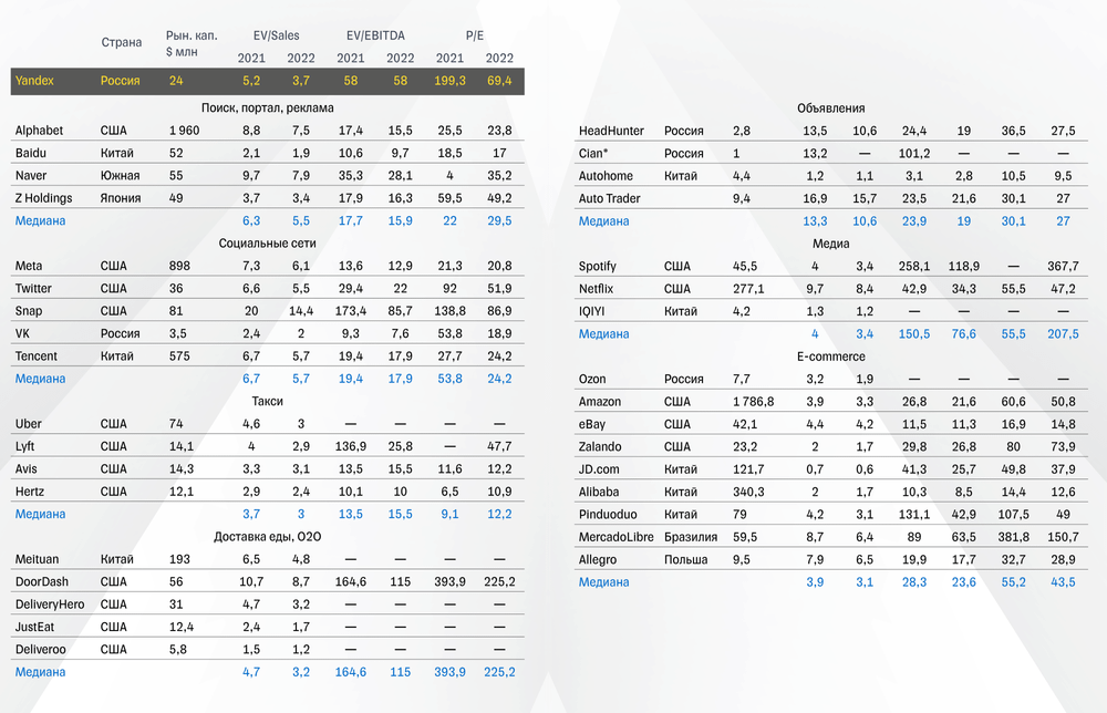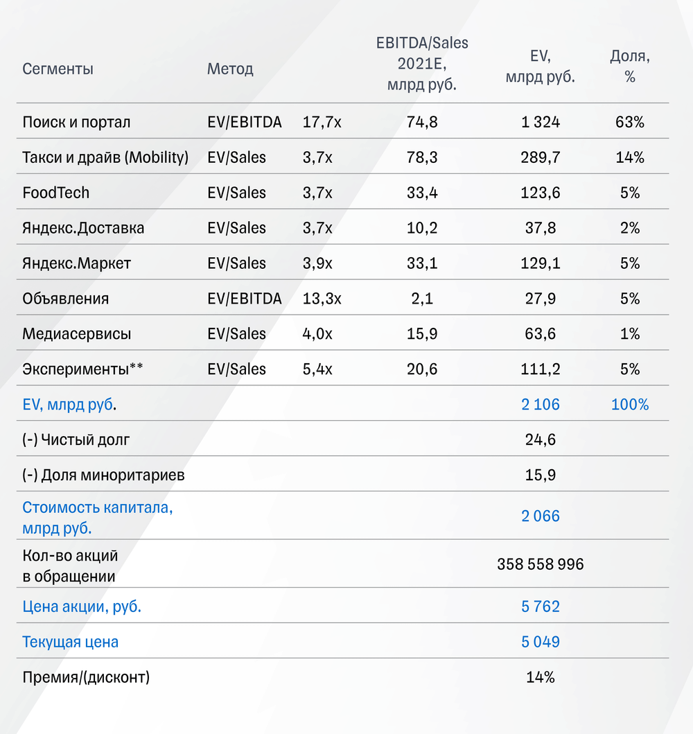 Так как Яндекс объединяет большое количество разных сегментов бизнеса, наиболее оптимальным вариантом оценки компании является метод SOTP, или «суммы частей».