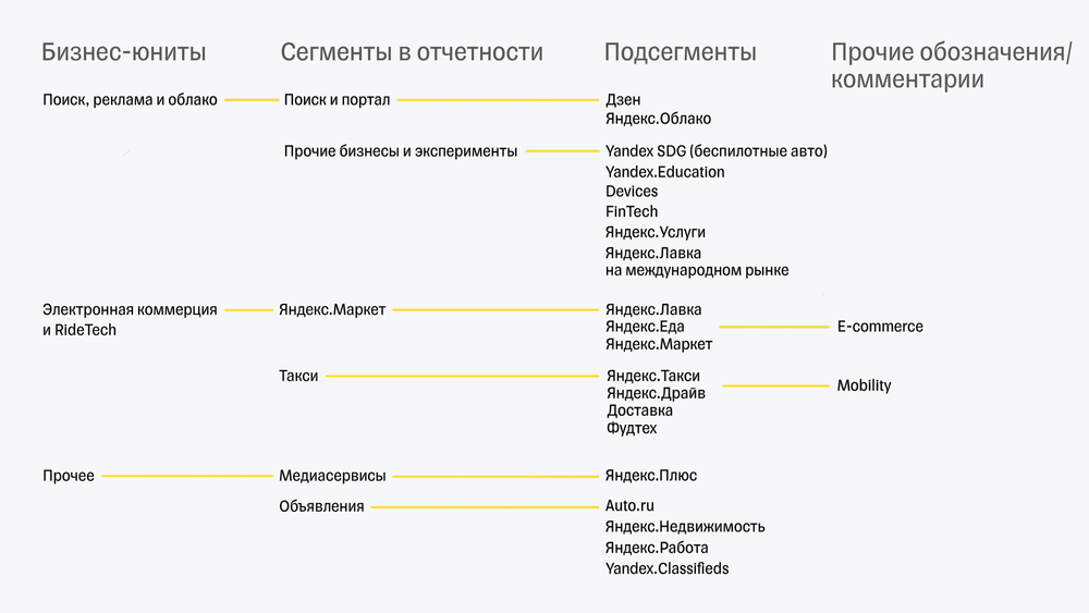 Сегмент Такси включает в себя mobility-бизнес (Яндекс.Такси и Яндекс.Драйв), Яндекс.Еду, Яндекс.Лавку и Яндекс.Доставку.