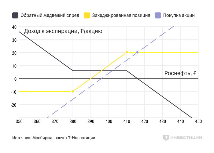 Если актив уже присутствует у вас в портфеле, а высокая неопределенность не позволяет рассчитывать на устойчивый результат, можно использовать опционную стратегию «обратный медвежий спред».
