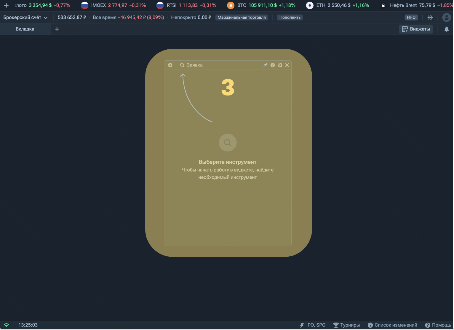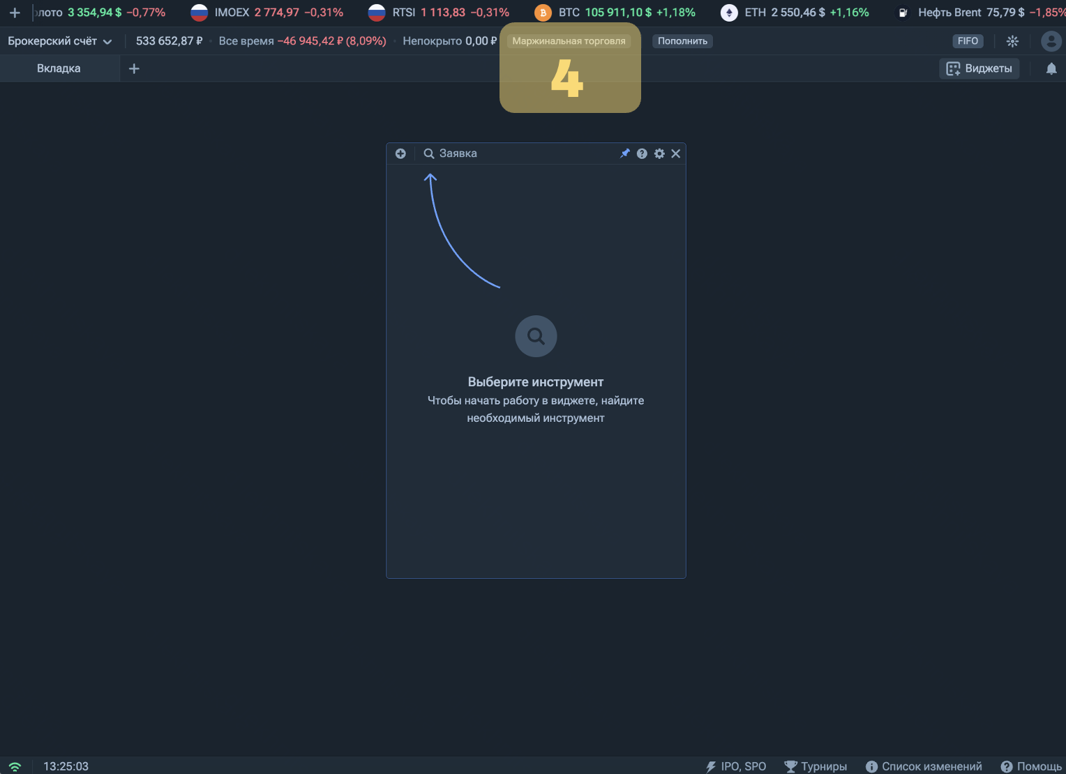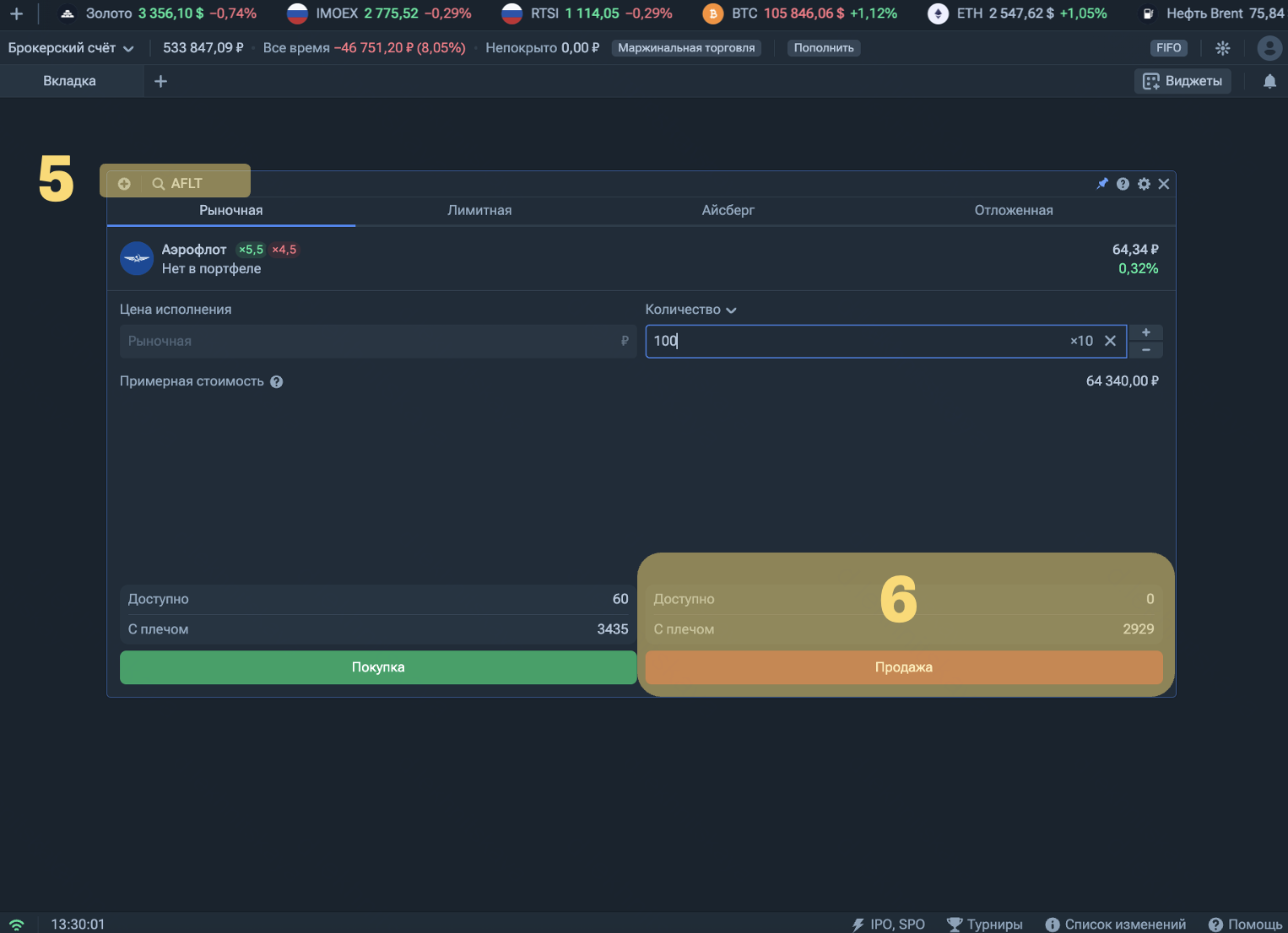 5 — затем выберите актив по вышеуказанному алгоритму. То есть выберите актив. Например, акции Аэрофлот.