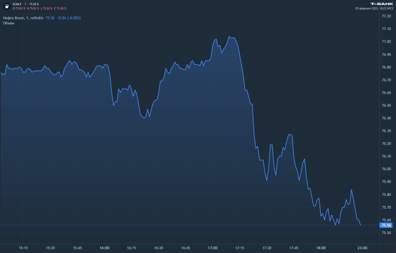 После решения членов ОПЕК+ оставить действующую политику по добыче без изменений мировые цены на нефть марки Brent все равно снизились примерно на 1,4%, до $75,8 за баррель (график ниже). Стоимость российской нефти Urals упала более чем на 1,5%, до $69,1 за баррель.