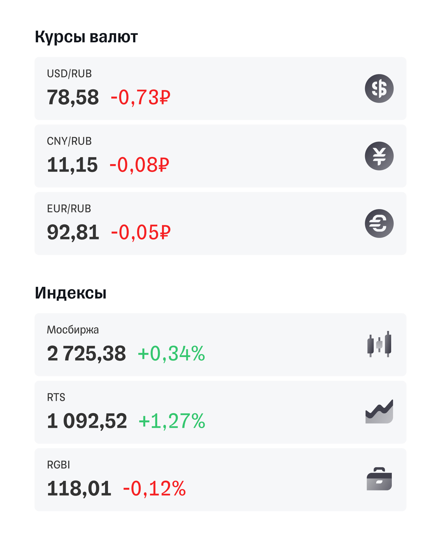 Индекс Мосбиржи закрыл основную сессию в зеленой зоне. Индекс гособлигаций упал на 0,12%. Банк России понизил курсы валют: 78,59 рубля за доллар (−0,73 рубля) и 92,81 рубля за евро (−0,05 рубля).