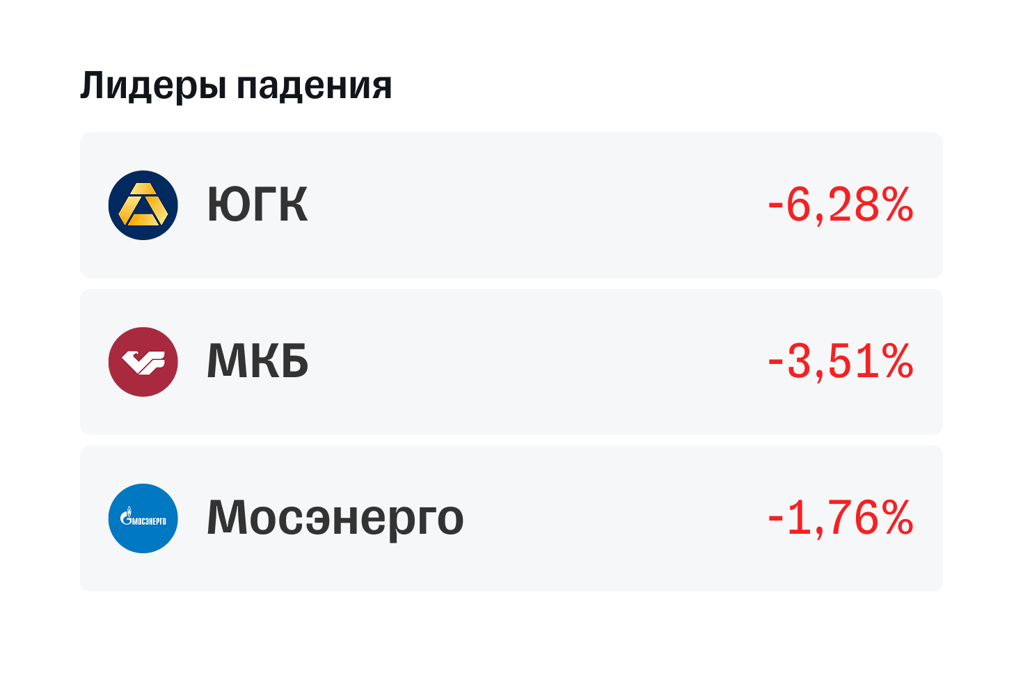 Падения. В аутсайдерах из индекса Мосбиржи — ЮГК.