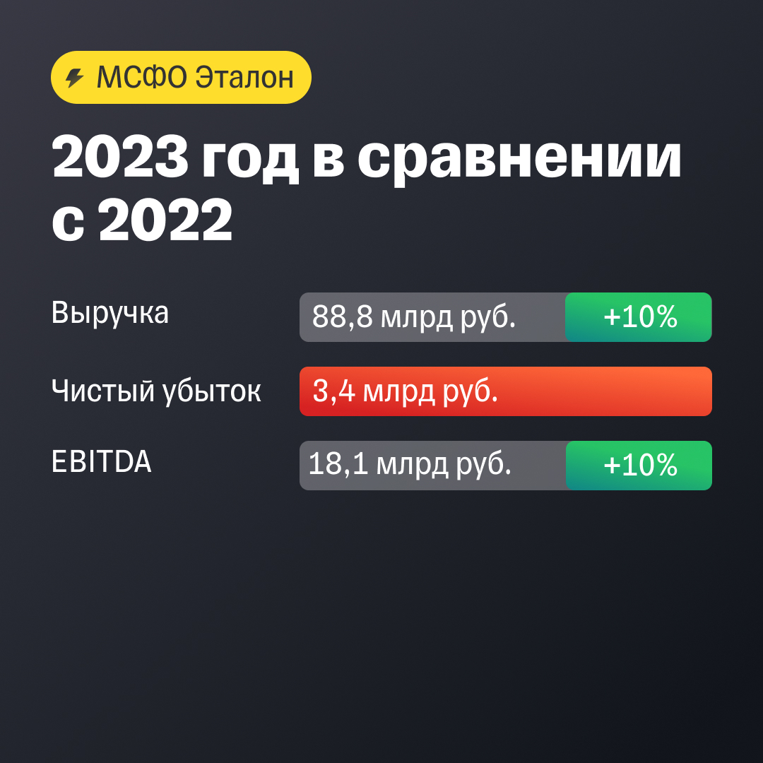 Строительная группа Эталон опубликовала финансовые итоги МСФО за 2023 год. Девелопер закрыл прошедший год с убытком против прибыли 13 млрд в 2022 году.