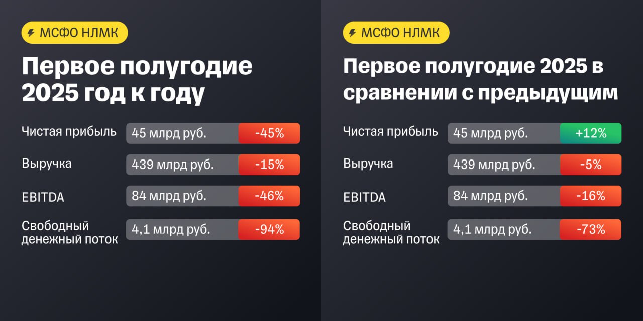 «Вышедшие цифры не должны стать сюрпризом для рынка, учитывая схожую динамику у конкурентов отрасли. При таком низком денежном потоке и фактически отсутствии денежной подушки на дивиденды НЛМК за первое полугодие мы бы не рассчитывали.