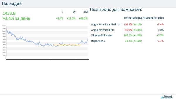 commodity #ANGPY #AAL #SBSW #GMKN Сегодня сильный рост показывает Палладий (+3.6%), что позитивно влияет на компании: